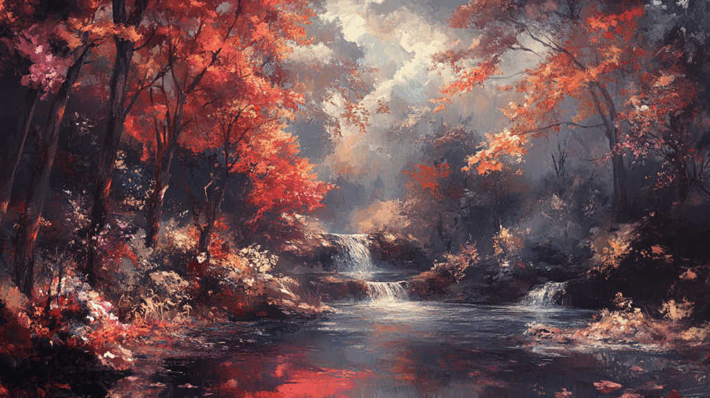 Son feuillage d’un rouge profond, presque automnal en toute saison, palpite d’une magie ancienne. Les troncs vibrent à certains chants oubliés, et les racines savent écouter. En son cœur se trouve un village caché, celui des Faunes, qui y vivent en paix depuis des siècles. Protégés par l’enchantement des Trois Sceaux Sylvestres, ils veillent sur l’équilibre du lieu, accueillant parfois les orphelins Ramharr et les âmes perdues dans le monde des Hommes.